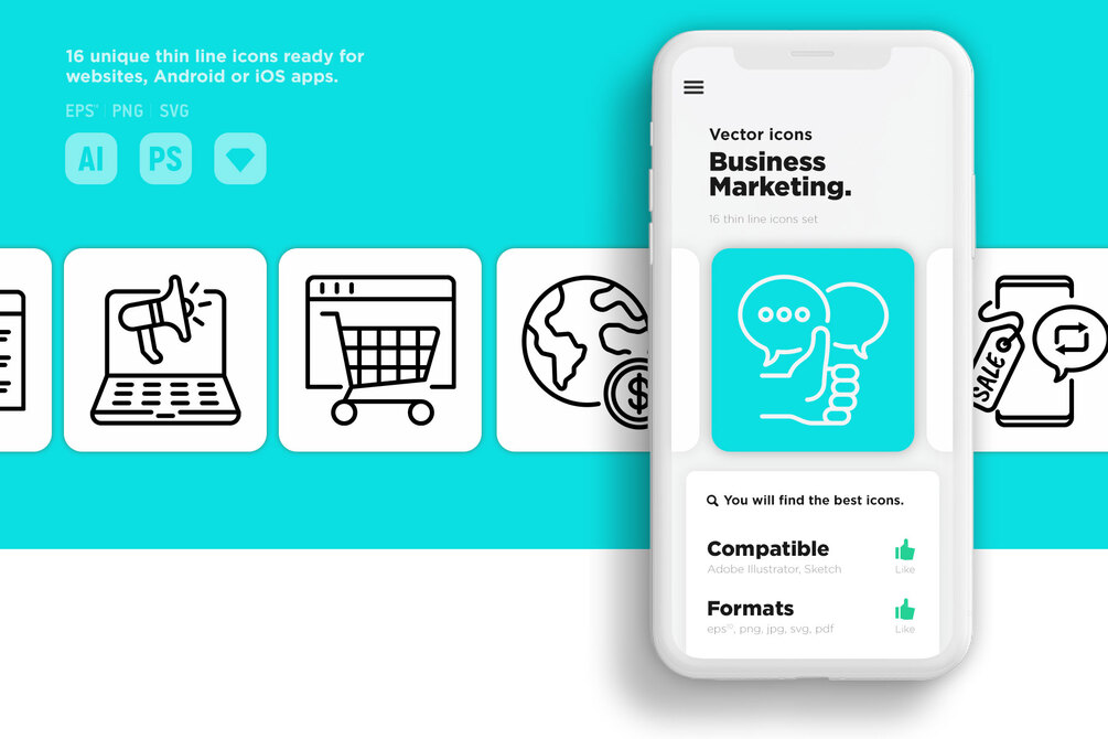 This set of icons was designed specifically for your project. No matter what you create, this set of icons is perfect for your application, iOS, Android, Websites and presentation or Graphic Design. A magnificent combination of lines and proportions creates a stunning and modern design. Created with passion to deliver the highest quality product.