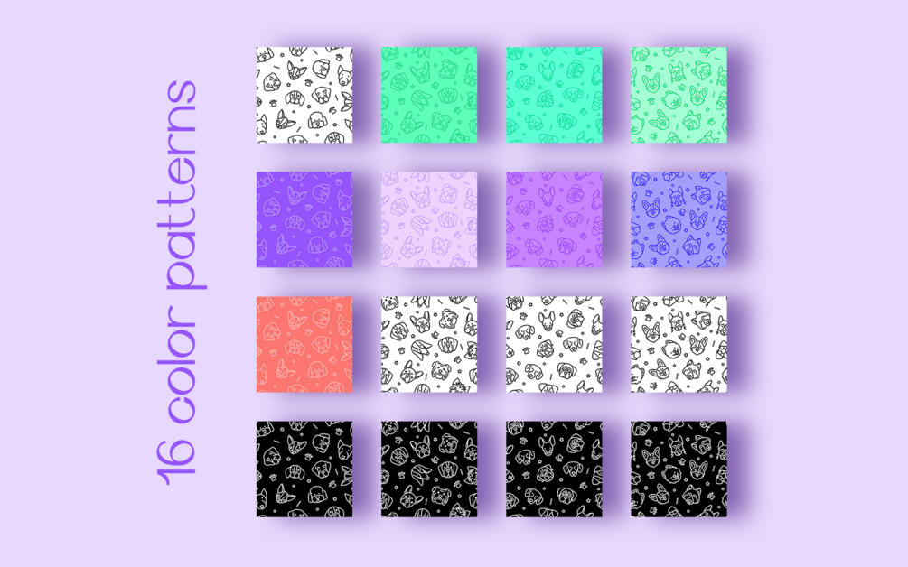 Discover a captivating collection of seamless icon patterns, each intricately crafted from a diverse selection of dog breed icons. These patterns are more than just designs; they're a celebration of our furry friends. Whether you're a dog lover or simply seeking patterns with a touch of canine charm, these patterns are tailor-made for you. They're versatile and ready to enhance your creative projects, from website backgrounds to delightful stationery, and everything in between. Elevate your work with these heartwarming patterns, and let your projects reflect the love and personality of our four-legged companions.
