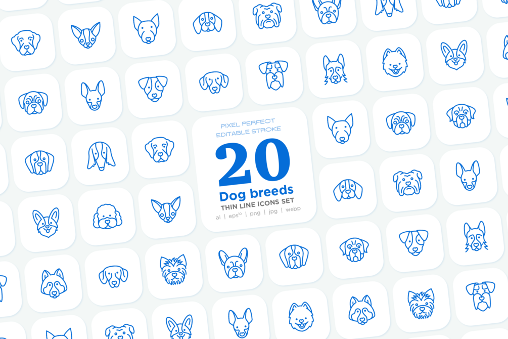 Dog Breeds | 20 Pixel Perfect & Editable Stroke Thin Line Icons Set