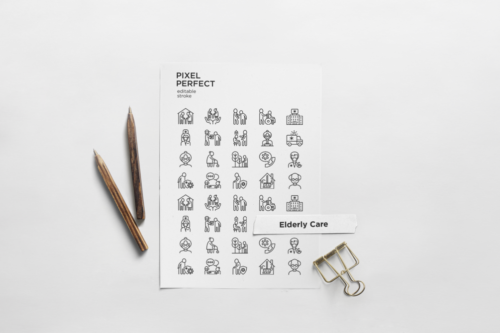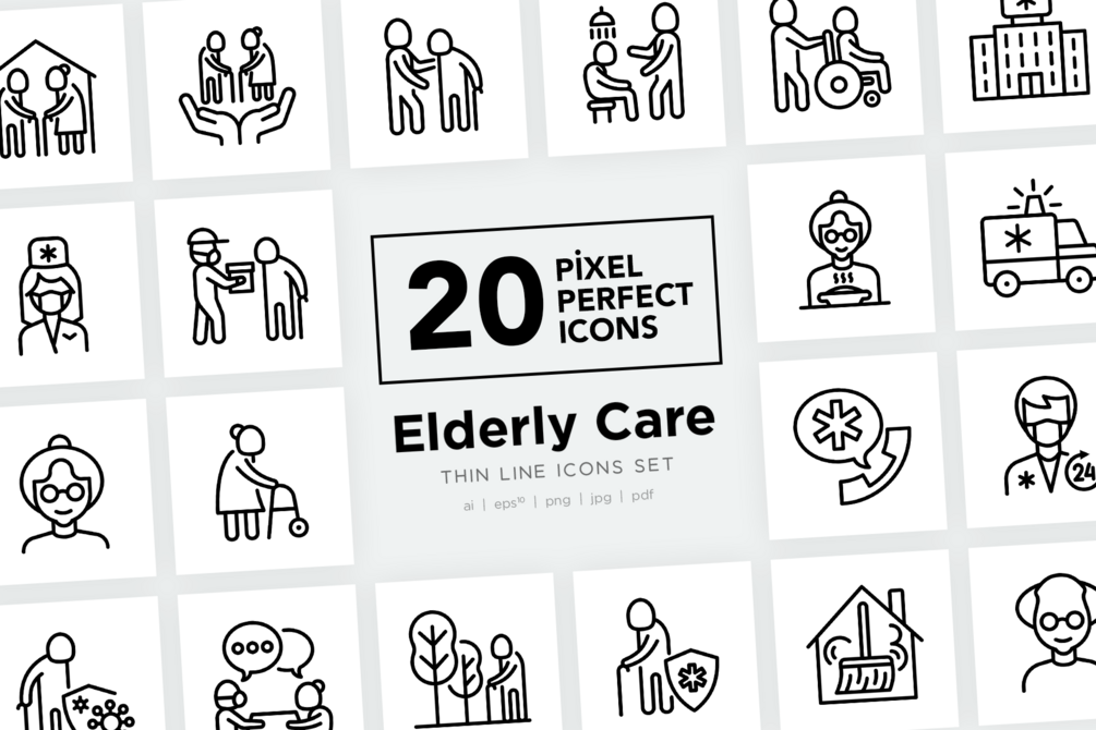 Elderly Care | 20 Pixel Perfect & Editable Stroke Thin Line Icons Set