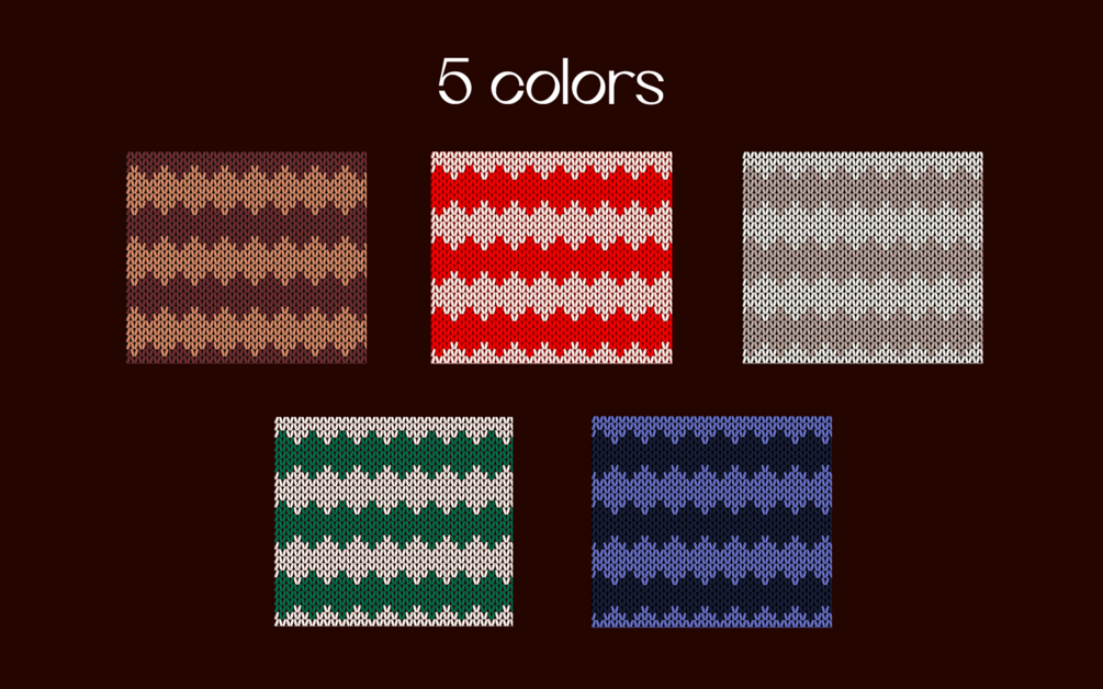 Explore a seamless collection of knitted patterns featuring four distinct designs, each offering five vibrant color variations. Elevate your projects with these versatile and eye-catching patterns that add a touch of warmth and texture to your creative endeavors.