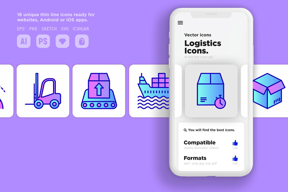 - Compatible with Sketch, Adobe Illustrator and IconJar