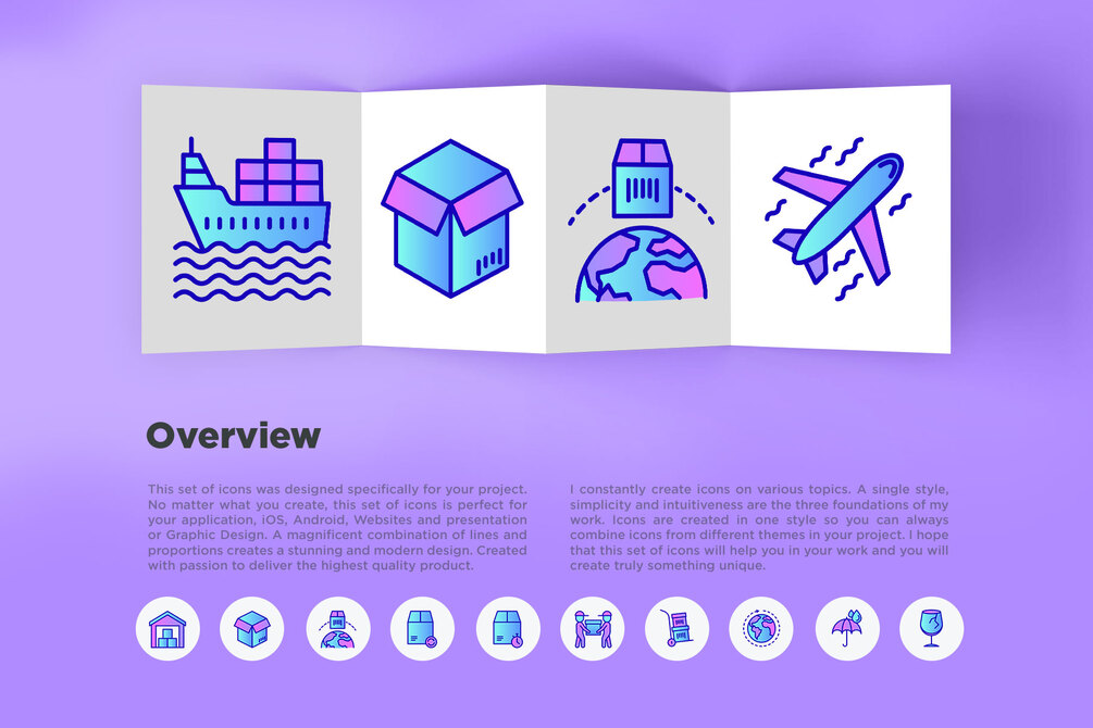 I constantly create icons on various topics. There are already several thousand icons in my collection. A single style, simplicity and intuitiveness are the three foundations of my work. Icons are created in one style so you can always combine icons from different themes in your project. I hope that this set of icons will help you in your work and you will create truly something unique.