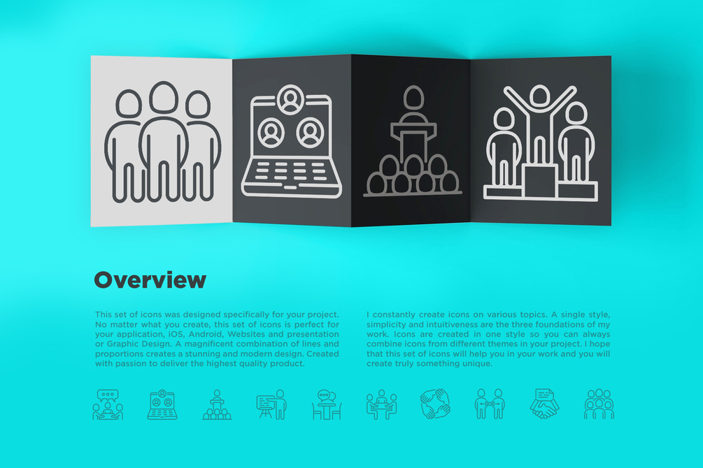 This set of icons was designed specifically for your project. No matter what you create, this set of icons is perfect for your application, iOS, Android, Websites and presentation or Graphic Design. A magnificent combination of lines and proportions creates a stunning and modern design. Created with passion to deliver the highest quality product.
