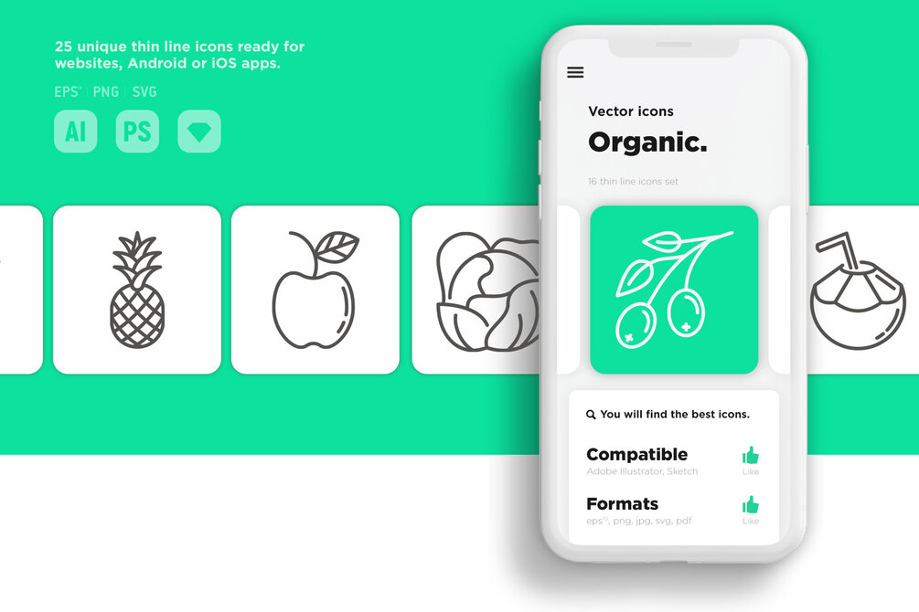 Organic | 25 Thin Line Icons